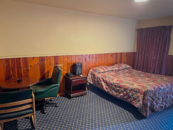 Discover the hidden charm of a rustic motel, a captivating relic of a bygone era. This location has rooms of varying sizes, whether it is a one bed with an ensuite or a room with a fitted kitchen. Its weathered facade, faded signs, availability for long term guests and more, makes this location perfect for a gritty set that invokes feelings from mystery to nostalgia to hardship.